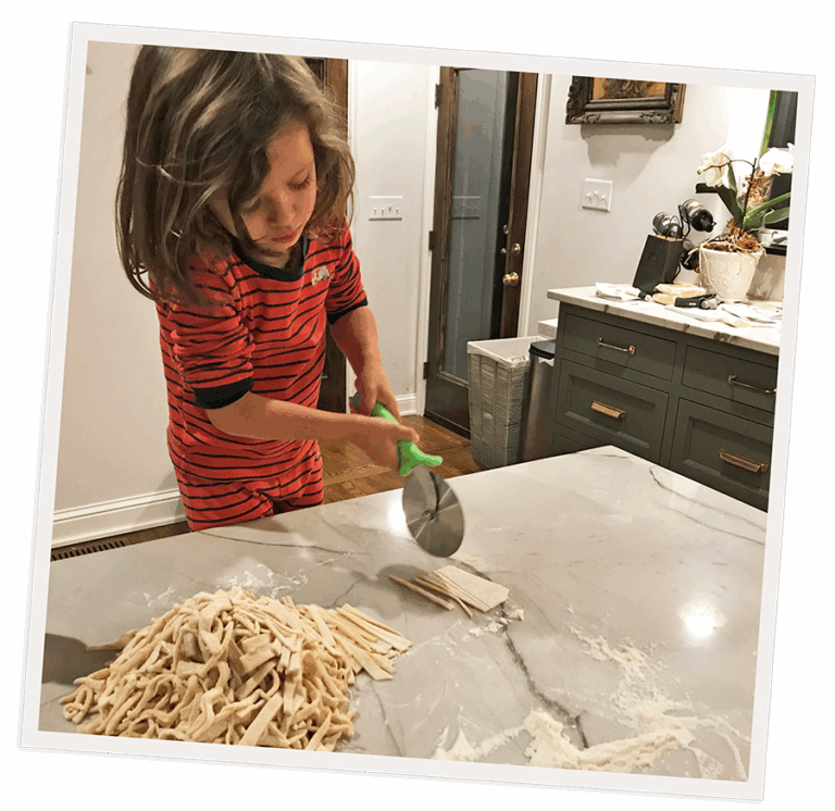 The then 4-year-old who is allowed to help make the noodles.