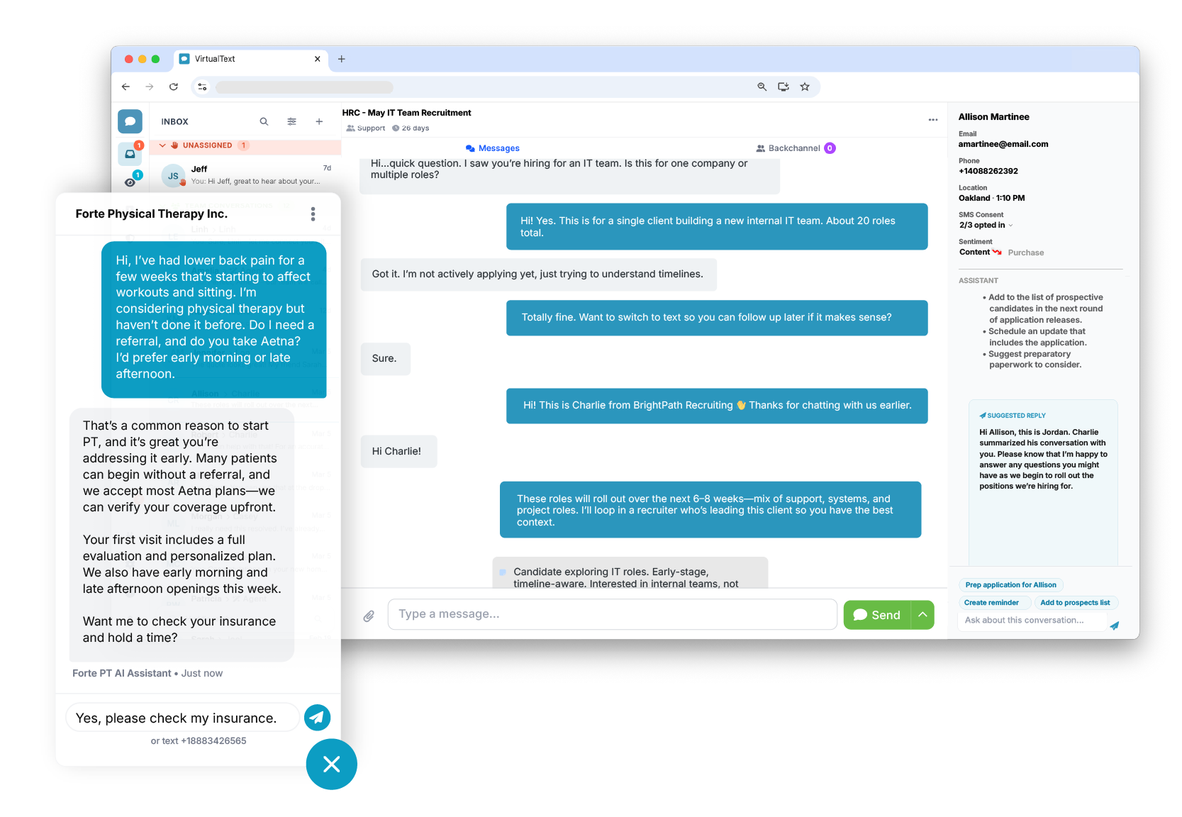 Because relationships are built on history, VirtualText unifies SMS, MMS, and web chat into an intelligent shared inbox—protecting conversations and your company reputation while helping teams move faster and smarter.